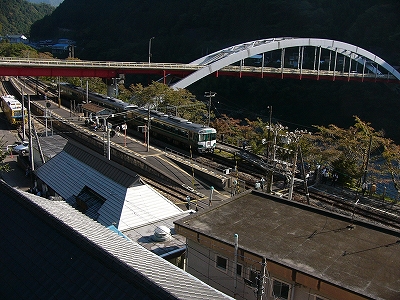 徳島県北部を西から東へ下る吉野川は池田で大きく進路を変えます。 その変える直前にあるのが、大歩危峡と小歩危峡です。このあたりは 車窓も美しく、特急列車車内でも土讃線で一番眺めがいいところと紹介されます。 駅データ 高松からの距離:98.2 児島からの距離:89.5 島式・単式2面3線 トイレ有 訪問記録 ・2009.5 ・2009.7.20 ・2009.10.18