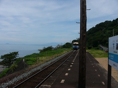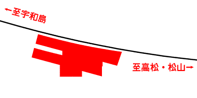 予讃線を走る特急は本線と向井原で別れ、内子経由の短絡支線・内子線を走ります。 一方本線は犬寄峠を西に迂回し、海岸線に沿って肱川河口まで行きます。 その海岸沿い線路の中に下灘駅はあります。 青春18きっぷのポスターで過去3回使われたことでも有名ですが、単に景色がいいというのが魅力です。 駅データ 高松からの距離: